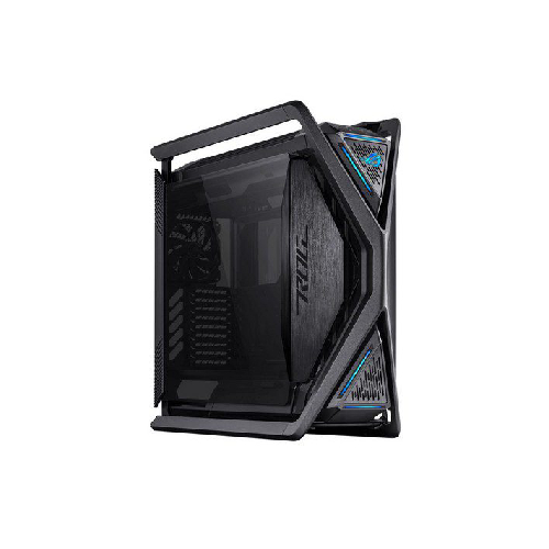 ROG Hyperion GR701 E-ATX computer case, 420 mm dual radiator support, four 140 mm fans, metal GPU holder, component storage, ARGB fan hub, 60W fast charging.